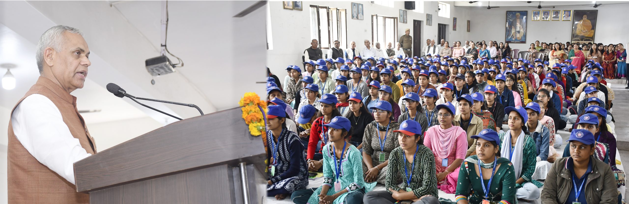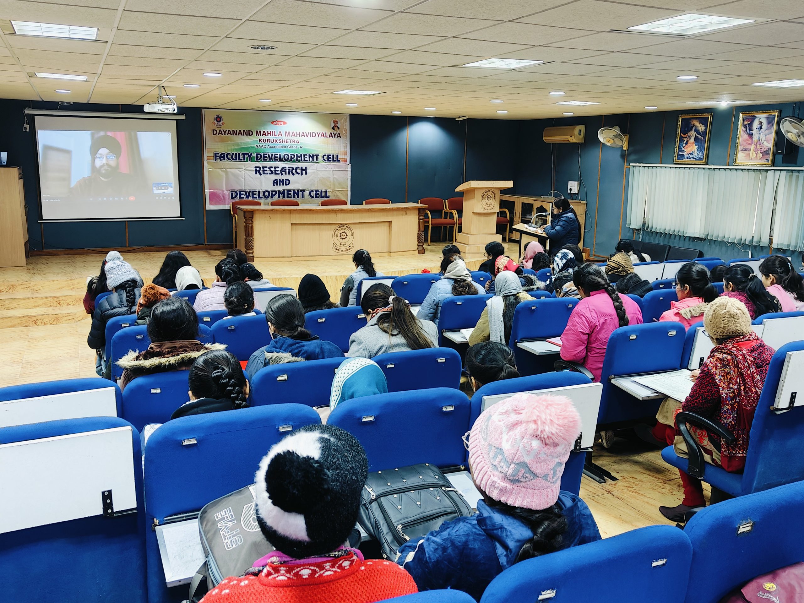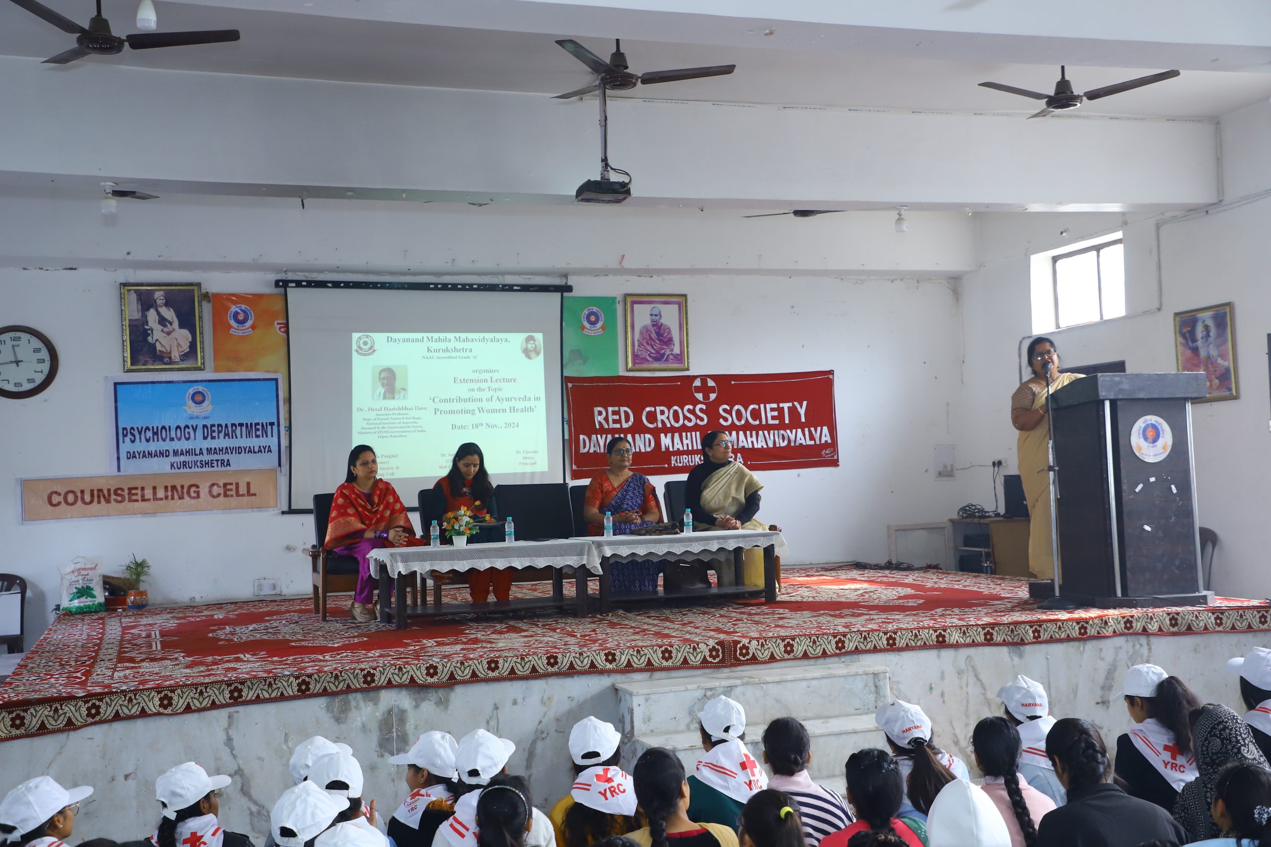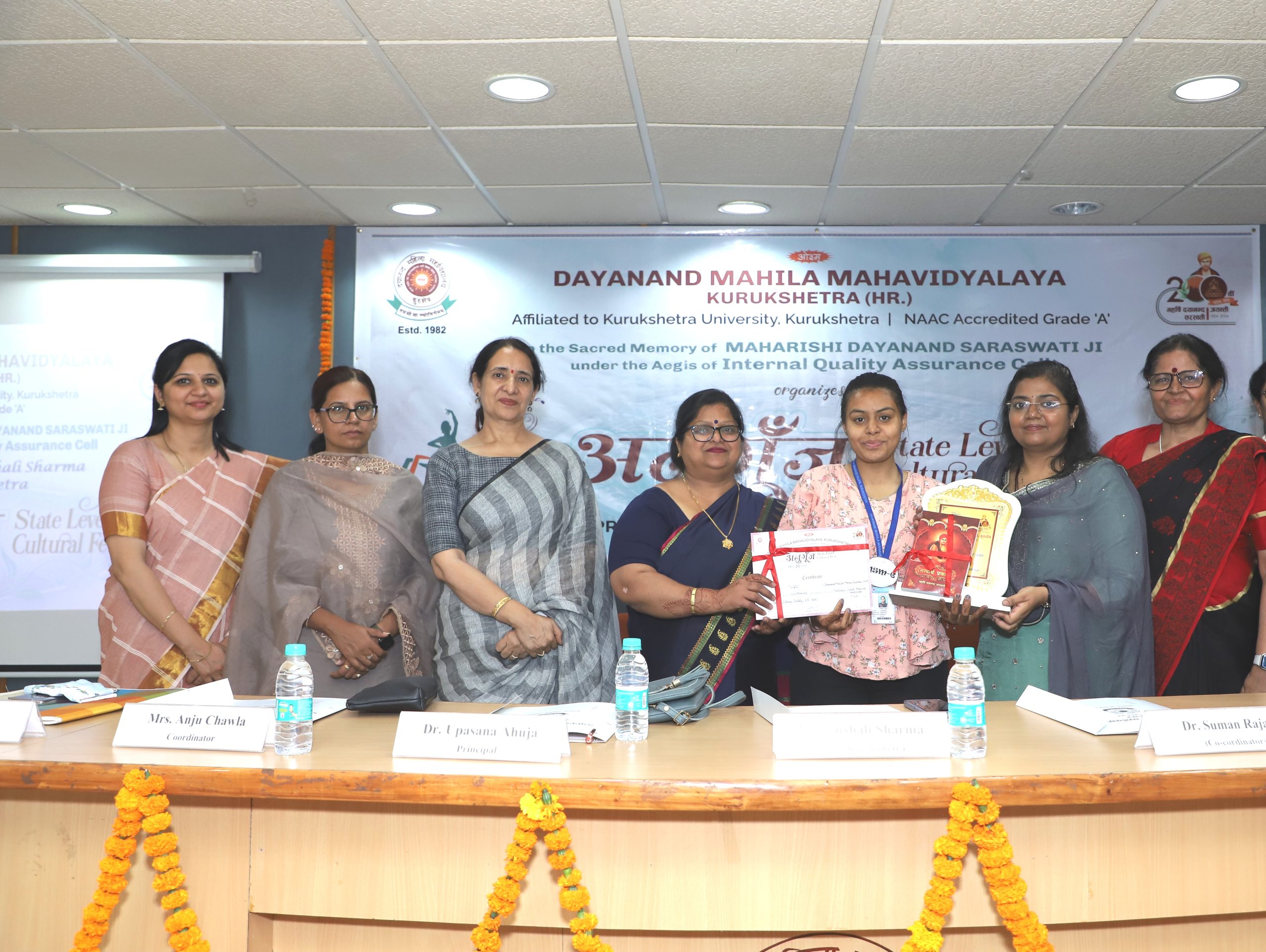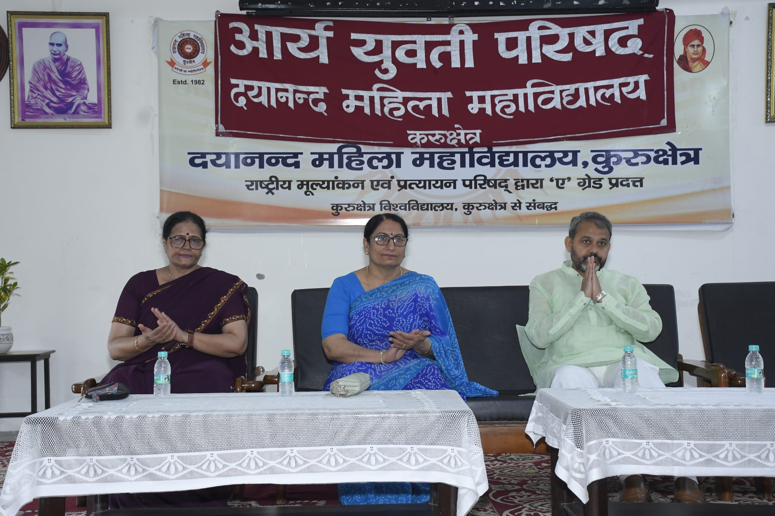 Dayanand Mahila Mahavidyalaya, Kurukshetra, was established in 1982 in the sacred memory of Maharishi Dayanand Saraswati with the aim to provide quality education to the girls of the region so that they may learn in healthy environment. Some visionaries of Arya Samaj came together and had the initiative to open a girls college where value - based and knowledge - based education could be imparted to the girls to make them meet the challenges of life. To promote cultural, social and moral awareness amongst students, every Monday assembly is held and Yajna is performed. For the last 39 years, the college has been successfully fulfilling its aim, reaching new heights every year. The college provides different courses in the streams of - Arts, Commerce, Science and Tourism at under graduate level and post graduate courses in English and Commerce. Students are given the facility to join add-on courses at certificate, diploma and advanced diploma level, simultaneously with their regular courses. In addition to the add-on-courses our college has also started 9 value added courses from 2018-19 for the skill developement of the students. The college has its own double-storeyed building with 28 class rooms, 17 labs, 8 smart room, one NCC room, one NSS room, an ICT equipped seminar Hall, a fully air conditioned ICT equipped Seminar and Conference Hall, a spacious Management Room and a Guest Room, one Medical Aid Room,..