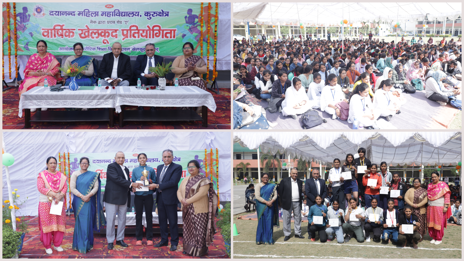 Dayanand Mahila Mahavidyalaya, Kurukshetra, NAAC Accredited Grade 'A' was established in 1982 in the sacred memory of Maharishi Dayanand Saraswati with the aim to provide quality education to the girls of the region so that they may learn in healthy environment. Some visionaries of Arya Samaj came together and had the initiative to open a girls college where value - based and knowledge - based education could be imparted to the girls to make them meet the challenges of life. To promote cultural, social and moral awareness amongst students, every Monday, assembly is held and Yajna is performed. For the last 43 years, the college has been successfully fulfilling its aim, reaching new heights every year. The college provides different courses in the streams of - Arts, Commerce, Science, Tourism, B.B.A. and B.C.A. at under graduate level and post graduate courses in English and Commerce. Students are given the facility to join add-on courses at certificate, diploma and advanced diploma level, simultaneously with their regular courses. In addition to regular courses add-on-courses, value added courses and skill enhancement workshops are being run by the college to enhance skills of the students. The college has its own double-storeyed building with 27 class rooms, 17 labs, 8 smart room, one room each to IQAC, NCC, NSS, Red Cross, Youth Welfare, Placement Cell, Wemen Cell, Grievance Redressal Cell & Road Safety Club, an ICT equipped seminar Hall, a fully air conditioned ICT equipped Seminar and Conference Hall,..